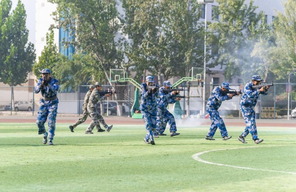 特色科目汇报环节集中展示了军训的实战化成效。擒敌拳刚劲有力,旗语操精准流畅,刺杀操与匕首操动作迅猛,展现出扎实的单兵技能;战术演练融合战术动作与战场救护,有效锤炼应急协同能力。整个汇报将军事素养与爱国爱校教育统一,充分彰显了学生令行禁止的纪律、雷厉风行的作风及朝气蓬勃的精神。