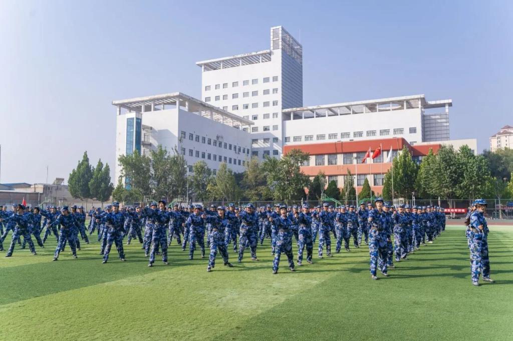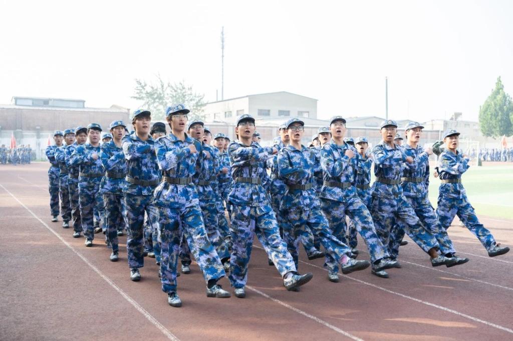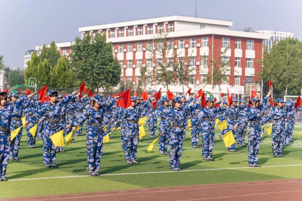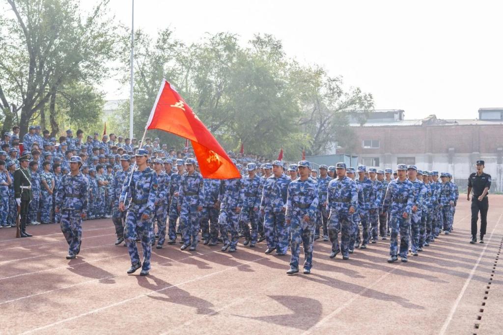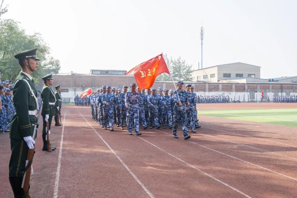 在分列式检阅中,五个营的方队依次通过主席台。同学们步伐铿锵、口号嘹亮,以整齐的队列和昂扬的士气,充分展现了严明的组织纪律性与良好的团队协作素养。