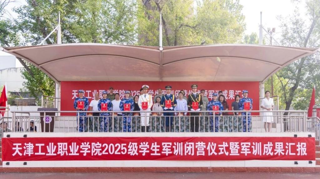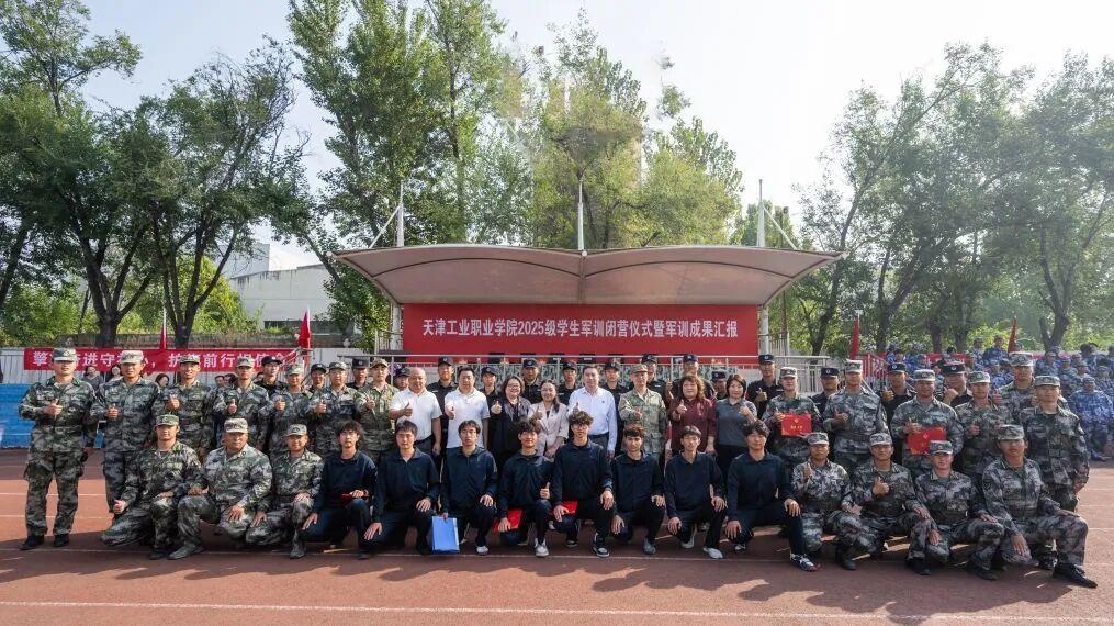 金秋砺剑,军训收官。9月30日上午,天津工业职业学院2025级学生军训闭营仪式暨成果汇报大会在学校操场隆重举行。学校党委书记汪坪,党委副书记、校长杨理连,北辰区人民武装部军事科科长古建恒,学校党委副书记柴娜娜,纪委书记陈林,副校长张秀芳,副校长赵波,党委委员、党委组织部(党委统战部)部长王洪艳,各相关部门主要负责同志及辅导员出席,共同见证2025级3200余名新生以饱满昂扬的精神风貌和优异的训练成果完成军训任务。仪式由校党委学生工作部(学生管理部)武装部部长尤建起主持。
